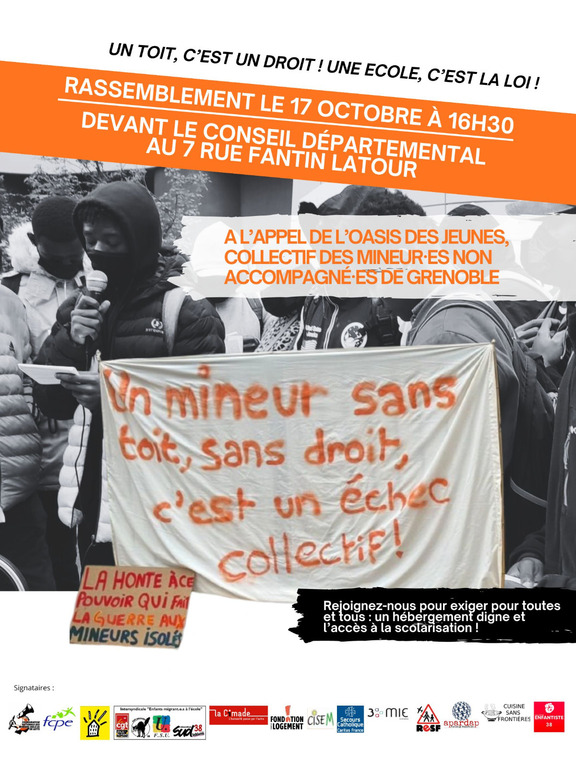 L'Oasis des jeunes, collectif de mineur.es non accompagné.es, appelle à un rassemblement vendredi 17/10 à 16h30 devant le département.